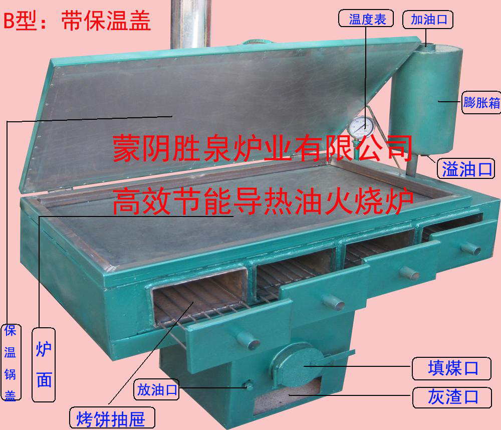 蒙阴县胜泉炉业是一家专业生产导热油烤箱(层式、卧式)、导热油煎饼炉、锅饼炉、火烧炉、和面机、压面机、锅饼成型机等专业设备的厂家。